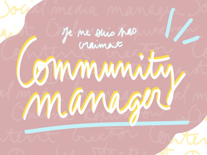Je me définis comme chargée de communication digitale car mon offre est diverse et gravite autour de toute la production de contenu de marque sur le web. Évidemment les réseaux sociaux sont au cœur de l’accompagnement que je propose à mes clients. On associe régulièrement le terme de Community manager à la personne qui fait des … Lire la suite Je ne suis pas (vraiment) Community Manager